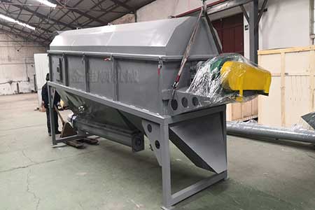 土豆篩分機(jī)是由六角形滾筒、機(jī)架、漏斗、減速器、電動(dòng)機(jī)五個(gè)部分組成,根據(jù)實(shí)際生產(chǎn)需要可以進(jìn)行各種安置方案設(shè)計(jì)。土豆進(jìn)入滾筒后,靠滾筒旋轉(zhuǎn)的離心力及跳汰作用來(lái)篩分土豆,通過(guò)不同網(wǎng)目的篩網(wǎng)逐一篩出。不同大小的土豆篩出后經(jīng)漏斗落入皮帶機(jī)送至成品料場(chǎng)。