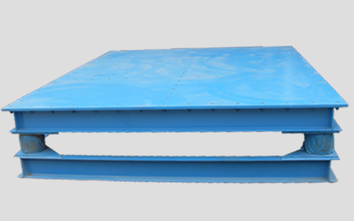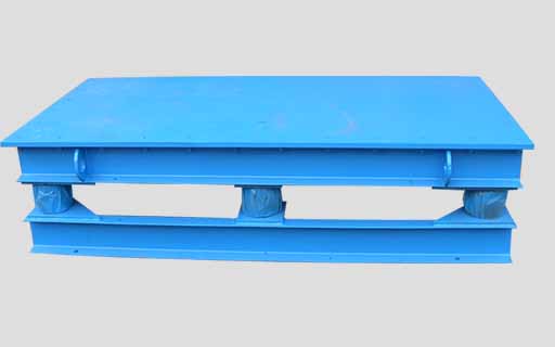 混凝土水溝蓋板振動臺主要由臺底架、振動電機和彈簧等部件組成,臺面與底架均用鋼板和型鋼焊接而成,振動臺是用振動電機加一對相同的偏心輪組成。并通過一對吊架聯軸器安裝在臺面(反面)中心位置,起著振實過程中平穩(wěn)、垂直方向的作用。